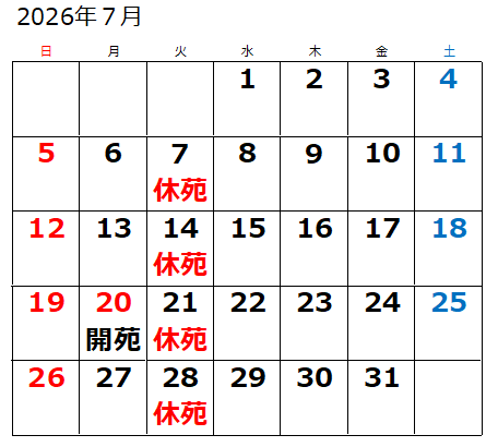 ※日曜日は、正午時点で警報発令中の場合は、終日休苑となります。